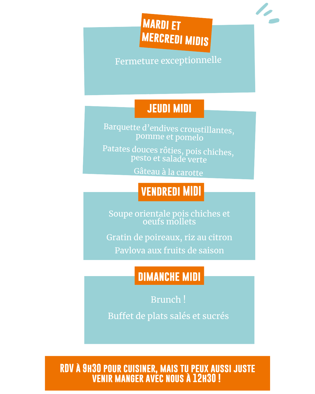 Certaines recettes sont suceptibles d'évoluer en fonction de nos restes et des invendus que nous récupérons.